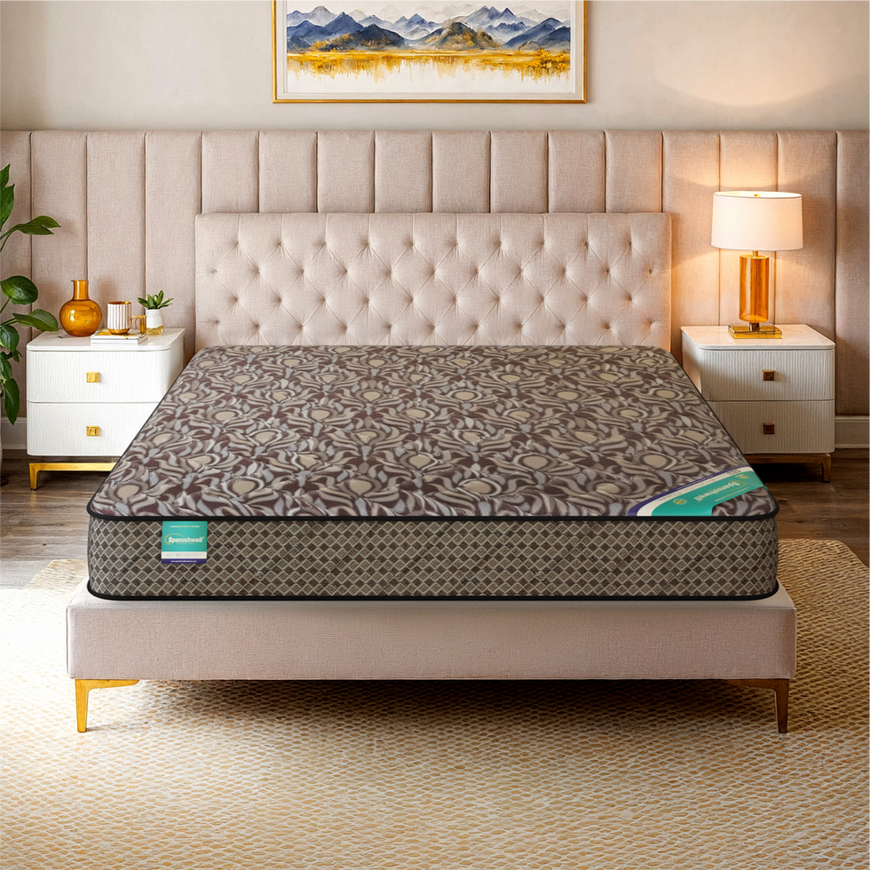 Designed for enhanced back care, MAHARAJA features knitted fabric quilting, orthopedic rebonded foam, HD expanded poly foam, and soft foam layers for optimal spinal alignment, pressure relief, and lasting durability—ensuring a restful and rejuvenating sleep every night.